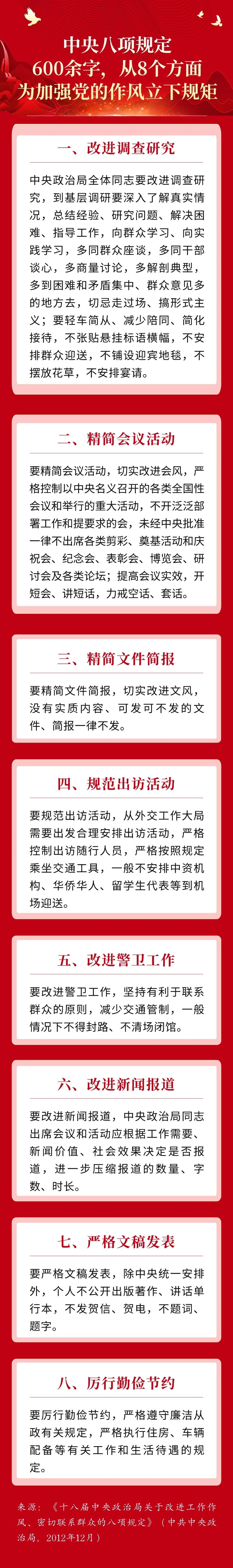 根據(jù)中央八項規(guī)定,各地各部門也制定了自己的具體規(guī)定,這些規(guī)定均屬于落實中央八項規(guī)定精神的細(xì)則。